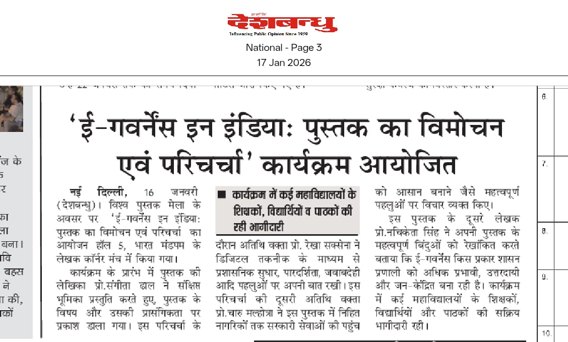 पुस्तक मेले में "ई-गर्वनेंस इन इंडिया" पुस्तक परिचर्चा एवं विमोचन की मीडिया कवरेज